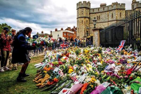 2022年9月9日,英国英格兰温莎城堡,人们在剑桥大门外献上鲜花。图/视觉中国